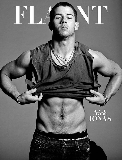 Nick covered the new issue of Flaunt, where he bared his toned body and… that’s sorta it, really. However, this should be enough for his legions of gay fans (and they are legion, apparently) – he sees you and wants you to be happy, as he told Huffington Post Live: